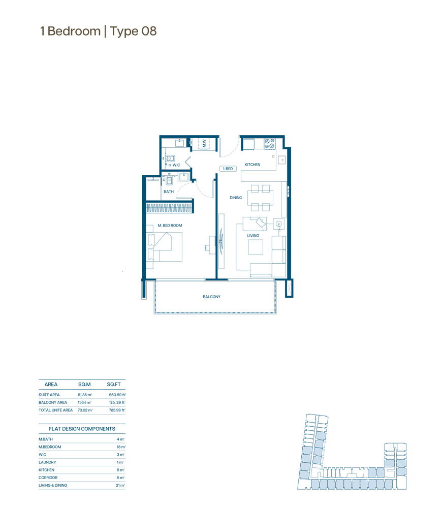 - Stylish and efficient 1-bedroom layout